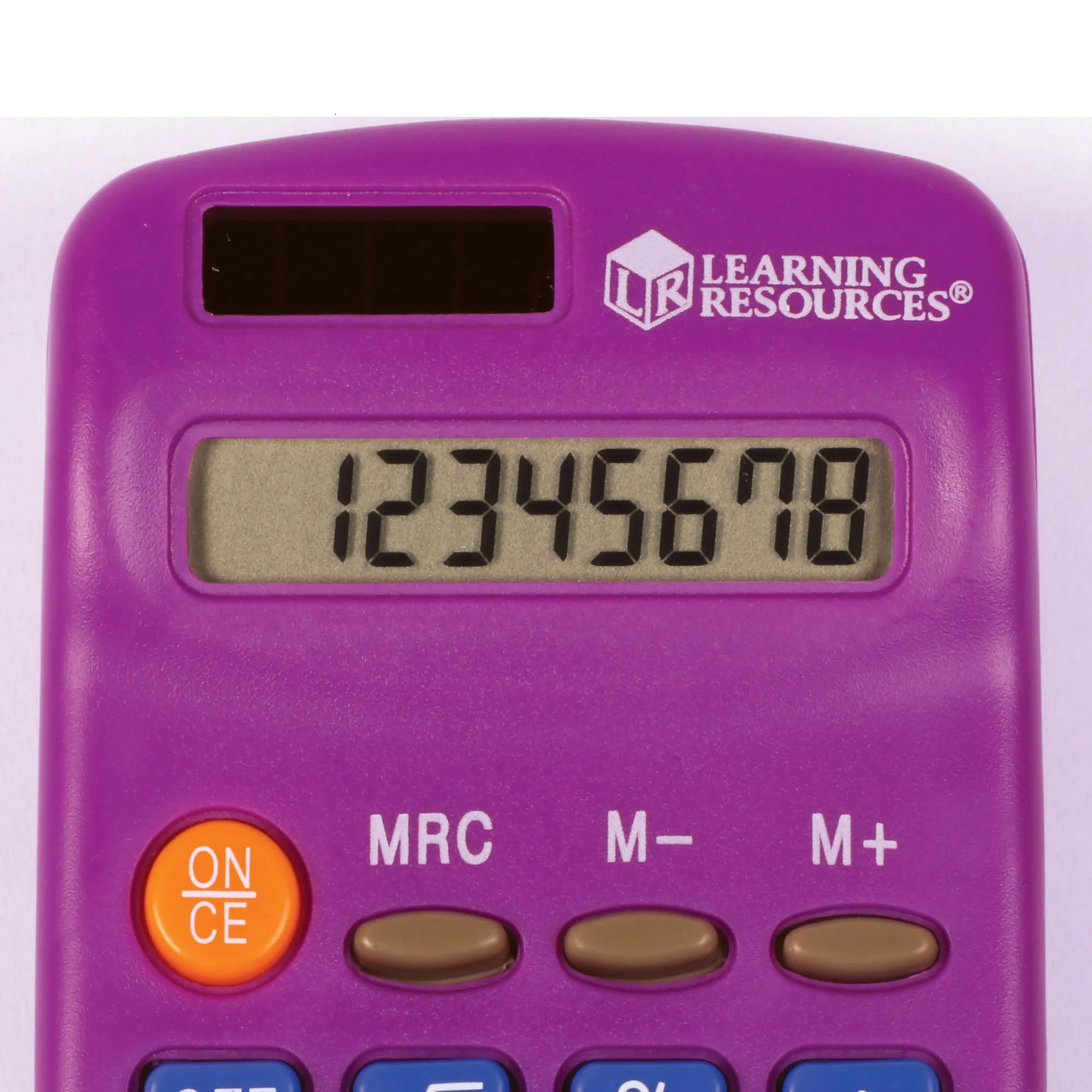 Make math colorful! Solve equations straight from the end of the rainbow with the Rainbow Calculators & Storage Chart. A fun colorful twist on the popular Primary Calculators, each set of 30 Rainbow Calculators comes with 5 vibrant colors (red, green, blue, orange, or purple). Add some color to your elementary math classes , there’s one for every day of the school week! Although the colors may be whimsical, the Rainbow Calculators do serious work: use these 4-function calculators to check addition, subtraction, multiplication, and division equations on the 8-digit display, or discover more advanced calculations like square roots, percentages, and more! Simple to use for beginners and powerful enough for older students, our Rainbow Calculators grow along with your skills.